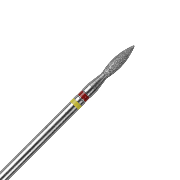 Der flammenförmige Diamantfräser ist besonders fein und reinigt sanft die Haut rund um den Nagel sowie den Nagelhautbereich.